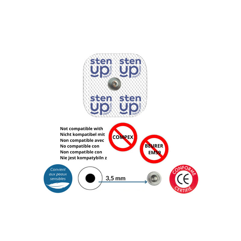 Type de Connexion: Équipés d'une connexion à bouton-pression de 3,5 mm pour une fixation sécurisée et fiable. Applications: Convient aux thérapies TENS (Stimulation Nerveuse Électrique Transcutanée) et EMS (Stimulation Électrique Musculaire). Construction de Haute Qualité: Fabriqués avec des matériaux durables pour assurer la longévité et des performances constantes. Facilité d'Utilisation: Processus de connexion simple et direct.